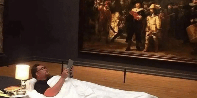 El Rijksmuseum de Ámsterdam permitió por primera vez que un visitante pasara la noche en una de sus salas y el afortunado fue Stefan Kasper, profesor de arte quien tuvo la oportunidad de dormir junto al cuadro La ronda de noche de Rembrandt, tras convertirse en el visitante número 10 millones desde la reapertura del museo en 2013.