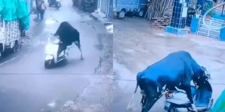 En Rishikesh, ciudad ubicada al norte de la India, un toro fue captado por una cámara de seguridad mientras empujaba una motoneta por la vía pública, escena que fue difundida por usuarios en redes sociales y no tardó en volverse viral.