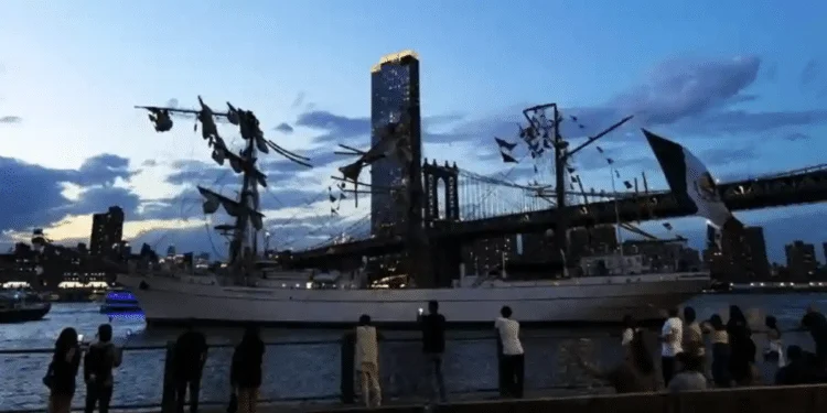 El buque se encuentra en el área este de Manhattan, donde aún permanecen 94 marinos mexicanos.